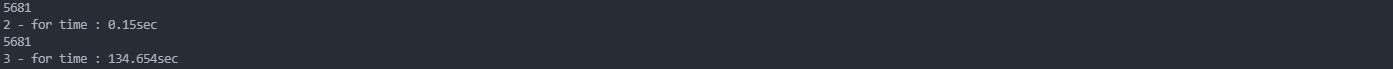 cout << "3 - for time : " << time << "sec" << '\n'; // 3중 포문 걸린시간